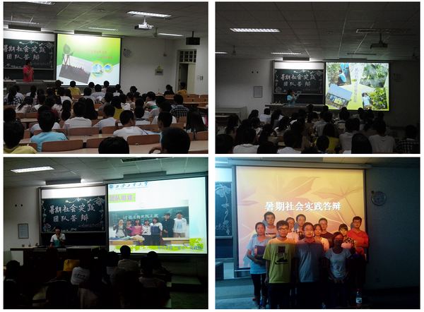 共九支队伍申请校级优秀实践队伍参加此次答辩。在今年暑期社会实践中,同学们走出校门,走上田间地头,走进小学校园,走进博物馆,走进养老院。进行十八大精神宣讲,进行中国梦演讲,进行支教、做农活,进行社会调查。各队有各队的收获,个人有个人的感受。绿旋风队、乡村梦之队、星尘队等一个个充满活力的队伍,丰富多彩的实践,形式多样的活动,在一张张演示文稿、一幅幅照片、一段段视频中向同学们进行了形象生动的展示。现场掌声笑声不断,同学们似乎又重回到了那段快乐的时光之中。活动最后,团委副书记王锐、杨蕾分别向大家讲了自己的感受,并对大家的实践提出了自己合理的建议,并得到了大家的认同。最后,乡村梦之队、红叶队、齿轮队、角落阳光队成为了优胜队伍,但各队有各队的风采,每一份努力都有意义。