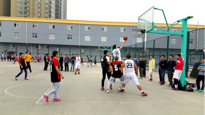 金秋十月,碧空如洗,凉爽舒适。2016年10月11日,伴着秋风,迎来了西安工业大学迎新杯篮球赛。正值中午,电信院与经管院展开了一场激烈的友谊赛。参与本次活动的有体育部部长王宏洋、副部长杨攀,生活部部长李晨阳,秘书部部长刘海涛。