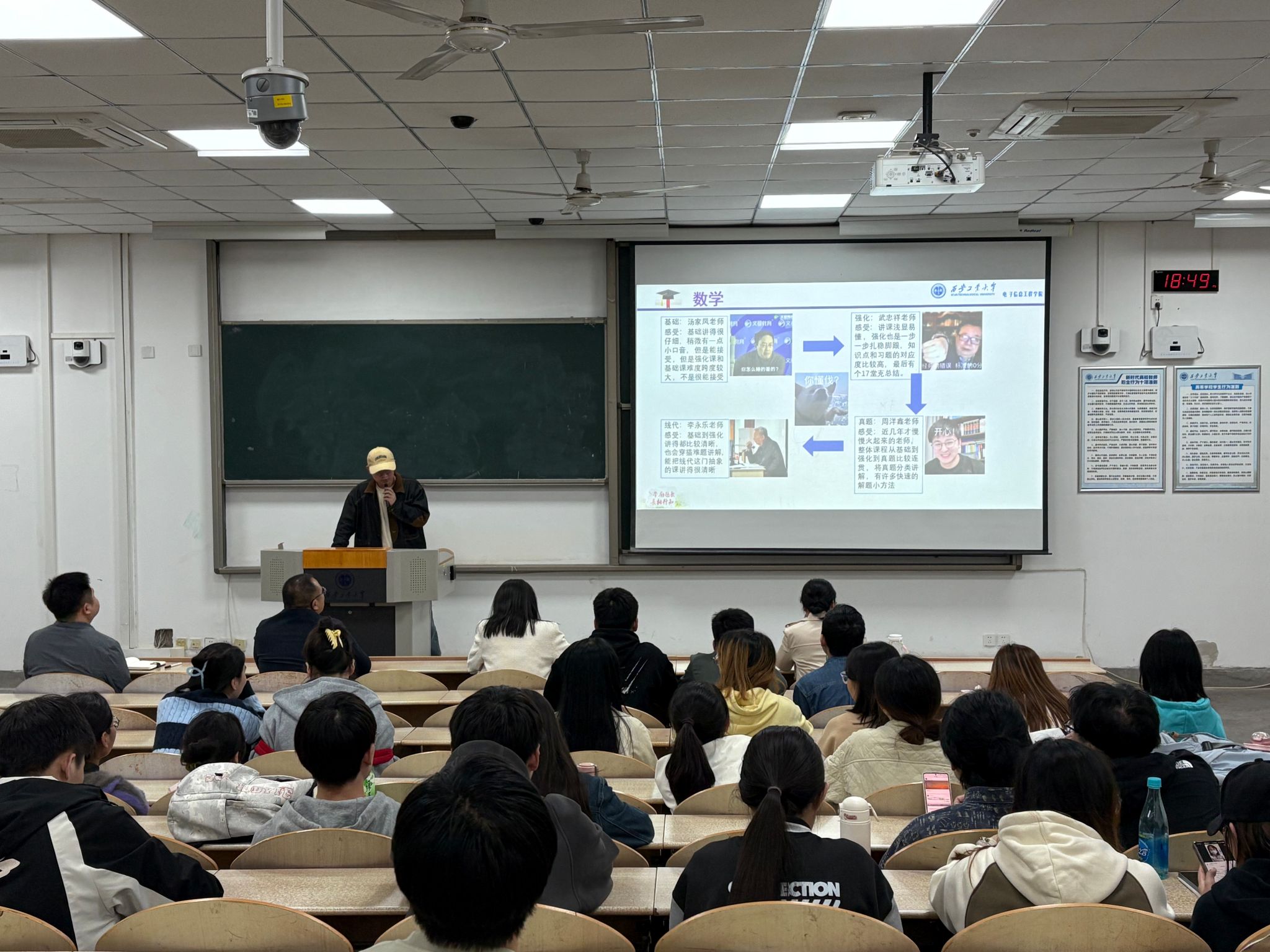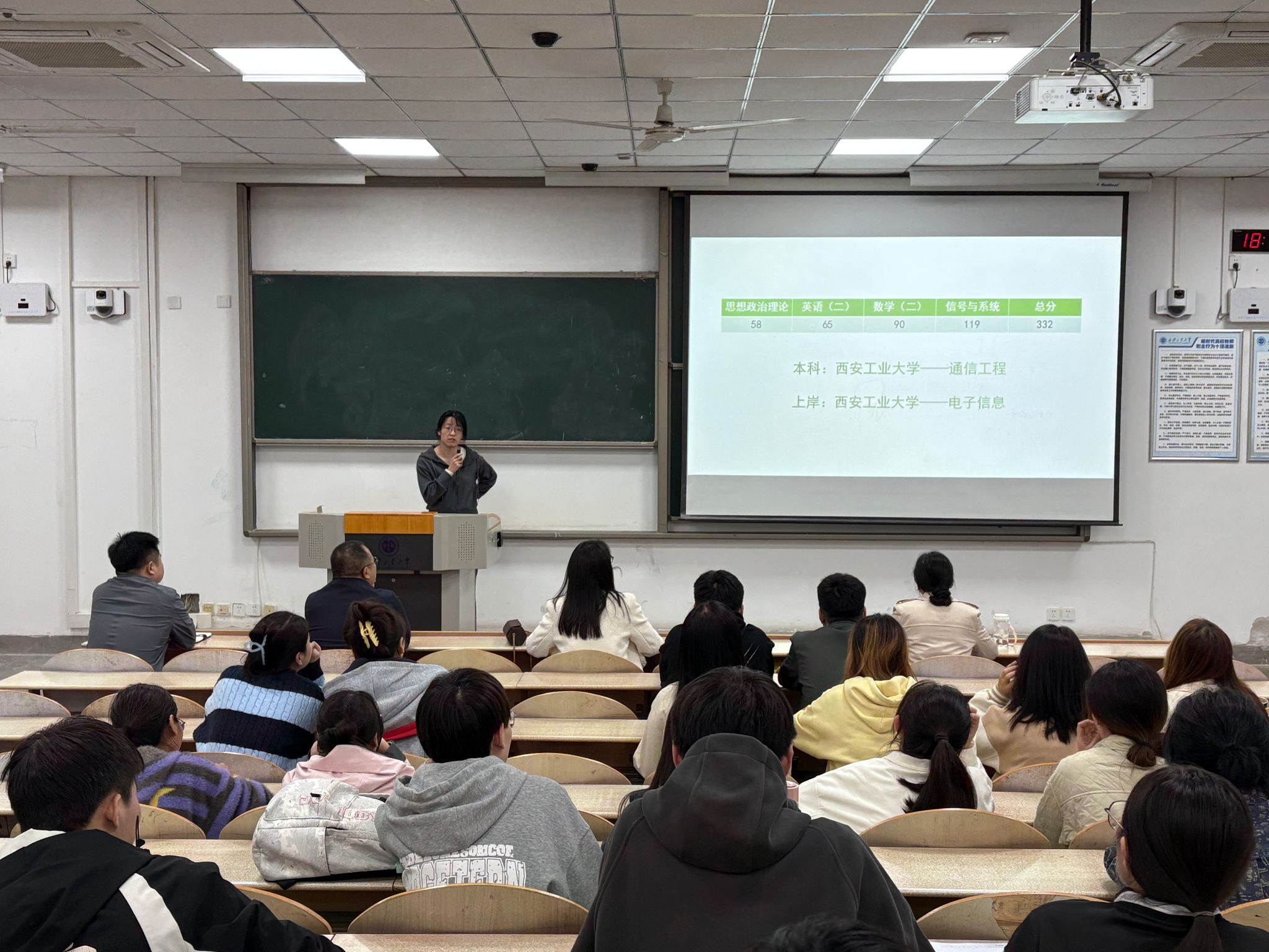 会上,两位成功上岸本校的研究生分别分享了自己的考研经验。两位学长、学姐从院校选择、复习计划、复试技巧等方面展开,结合自身经历建议同学们根据专业优势与个人基础合理定位目标院校,还分享了公共课与专业课的高效复习技巧,强调错题整理与心态调节的重要性。