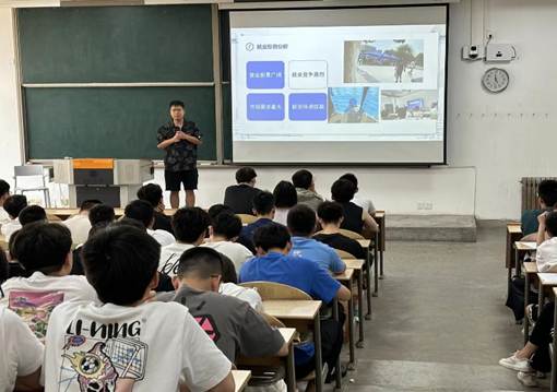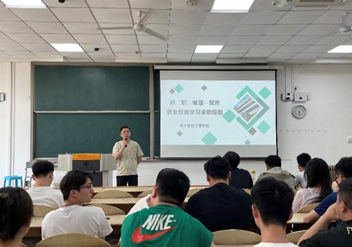 会议的开始,刘叶楠老师对会议进行致辞,他指出同学们应该做好任务安排,明确自己的求职意向,同时要认真投入自己的课题研究,立足于当下,着眼于未来。三位优秀研究生代表李洁馨、闫少雄以及王鹏同学结合自身丰富的求职经历,从制作简历、企业需求、专业技能、职业规划以及面试技巧等方面深入探讨求职经验,为同学们即将到来的秋招提出了宝贵的建议。