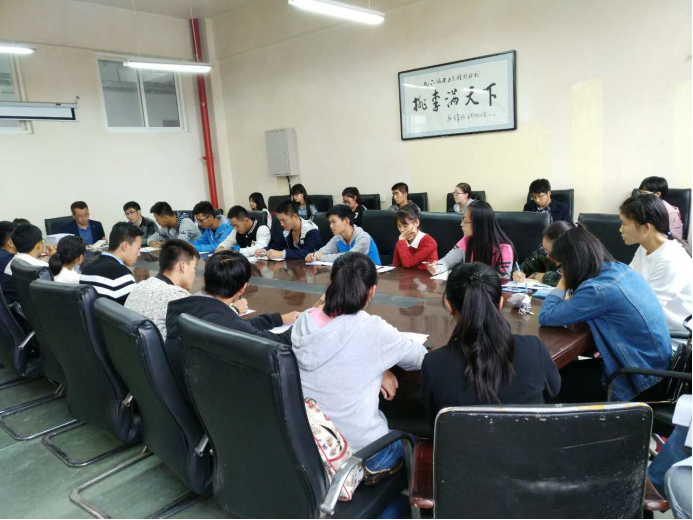 2016级组织召开了学风检查工作部署安排会议,本次会议由辅导员马雅玲老师主持,16级辅导员张鹏、夏开成两位老师以及16级全体46名班委负责人参加了本次会议。