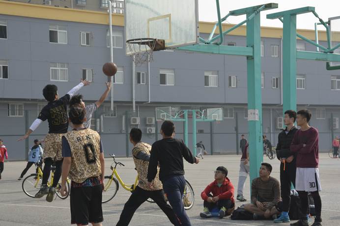 大二的学长们与大一的新生们在未央校区的露天篮球场进行了一场友谊赛。电信欧洲杯
