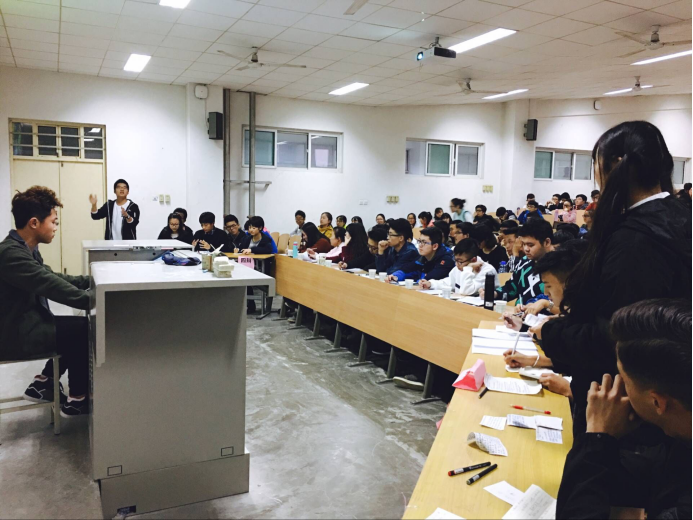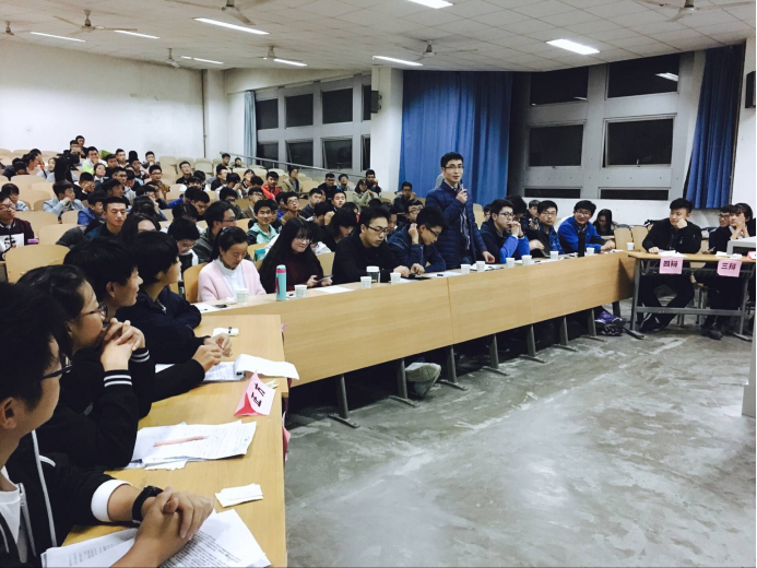 首先,在主持人维持秩序后,正反方各辩手进行了自我介绍,此时氛围也开始变得紧张了起来。比赛开始,先由各方一辩进行了观点阐述,其次各正反两方相互问答,此后双方又进行了驳论与攻辩,各方辩手相互合作,调理清晰。赛场气氛逐渐达到高潮,双方剑拔弩张,互不相让。最后,两方四辩选手各做了总结陈述,比赛结束。比赛结束后,由两位最佳辩手学长,学生会主席宗世钰,副主席习海宁就论题和辩论过程进行了表述和点评。最后由团委副书记夏开成老师进行了总结,夏老师讲到,辩论赛重在学习,重在锻炼思维能力,让我们每个人都能够重视过程,完善过程。