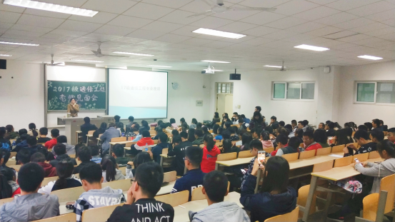 通信工程系华翔老师、雷斌老师、董绵绵老师、杜岳涛老师、张峰老师、杨永侠老师等8位老师参加,2017级通信工程专业全体学生参加此次见面会。